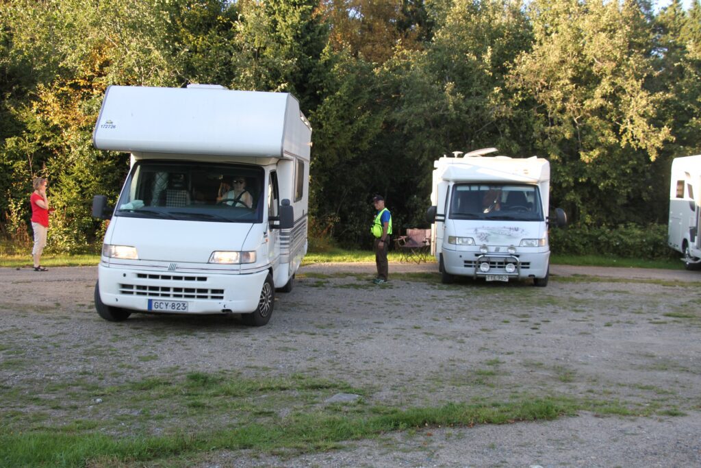 Tänä kesänä olemme laajentaneet pysäköintialuetta tanssitalon eteläpuolelle. Tilaa löytyy nyt muualtakin kuin hyvin suositusta ”yläpuolen” alueesta. Kuljetuksella ja pysäköintialueen laajennuksella ainakin yritämme huomioida kasvavan karavaanarien määrän tarpeet.